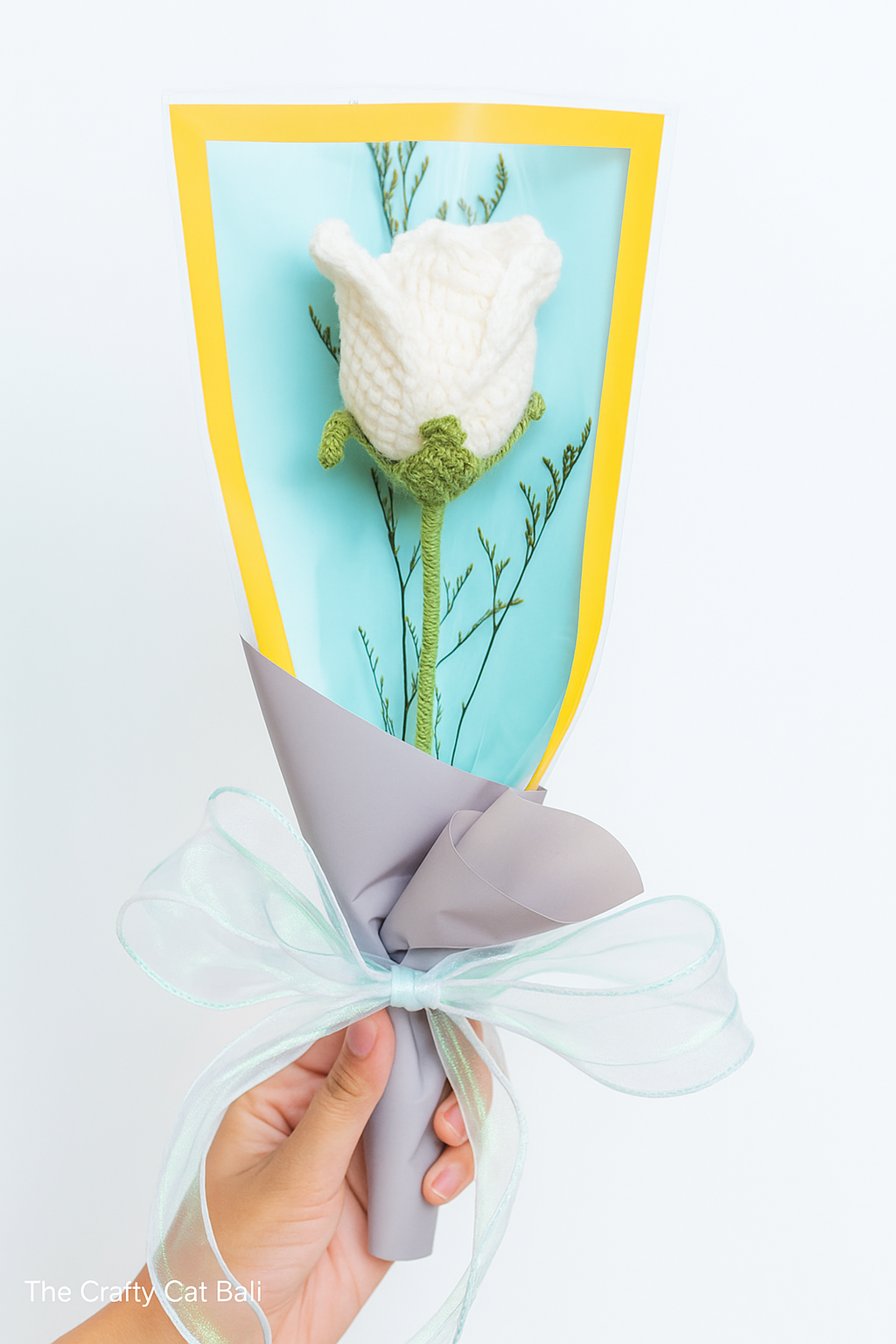 Single stems of crocheted flowers, packaged in beautiful wrapping.ย Brighten up someone's...